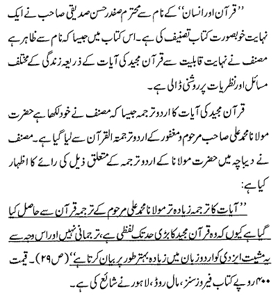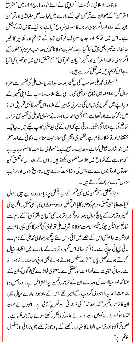 Syed Qasim Mahmud) in its March 1996 issue opened a series entitled Tashrih-ul-Quran. Its review of Maulana Muhammad Ali’s English