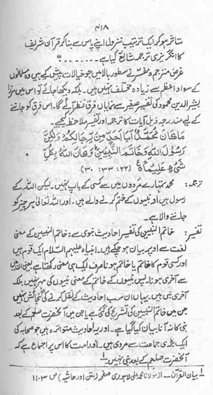 ‘finality of prophethood’ verse (33:40) from Bayan-ul-Quran.