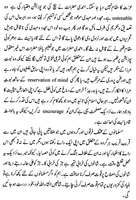 not be able to take any position short of Qadianism. As to