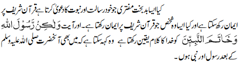 and denies the finality of prophethood.’