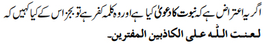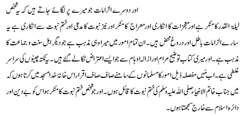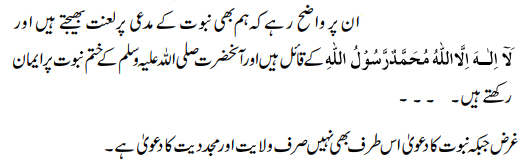 “Let it be clear to him [an opponent Maulvi] that I also curse the person who claims prophethood. I hold that