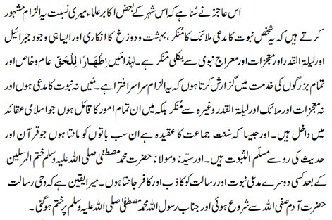 all these gentlemen that these allegations are an entire fabrication. I do not make a claim to prophethood. … After the Holy Prophet Muhammad, I consider anyone who claims