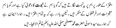 slander me by saying that I have made a claim to prophethood. … But it should be remembered that all this is a fabrication. Our