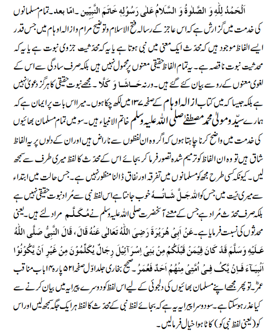 in my writings Fath Islam, Tauzih Maram and Izala Auham,