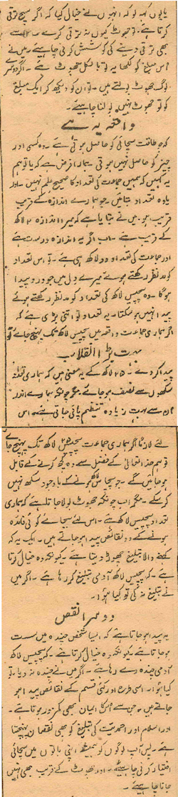 exaggerating their numbers and indulging in falsehood. He said in a khutba in 1950:
