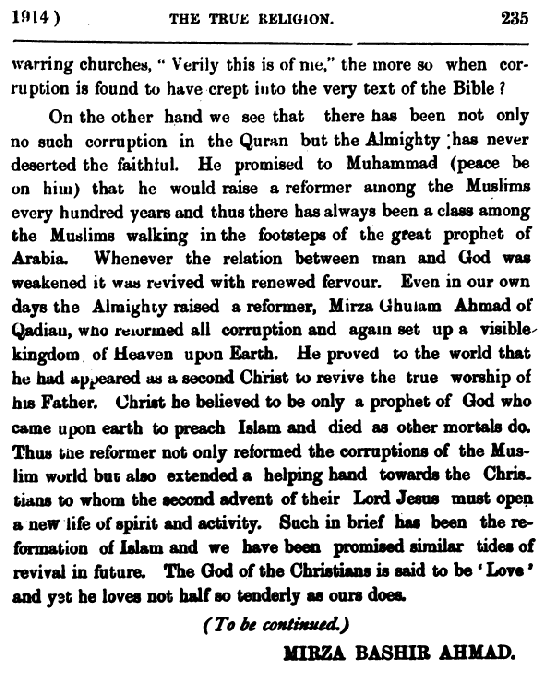 Mirza Bashir Ahmad, brother of Mirza Bashir-ud-Din Mahmud Ahmad, wrote an article